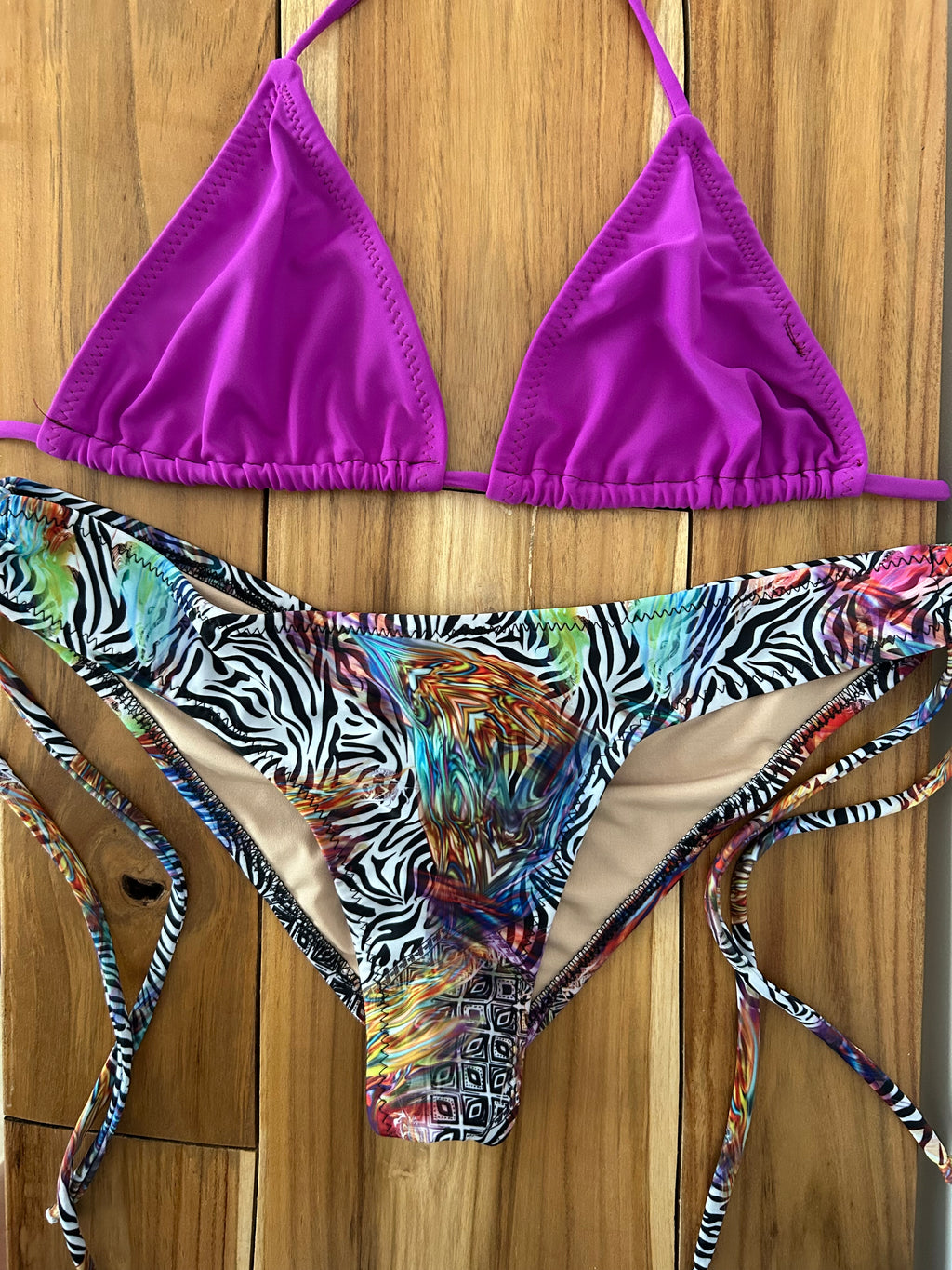 Purple Dotted Thong Bikini Bottom with Spaghetti Ties