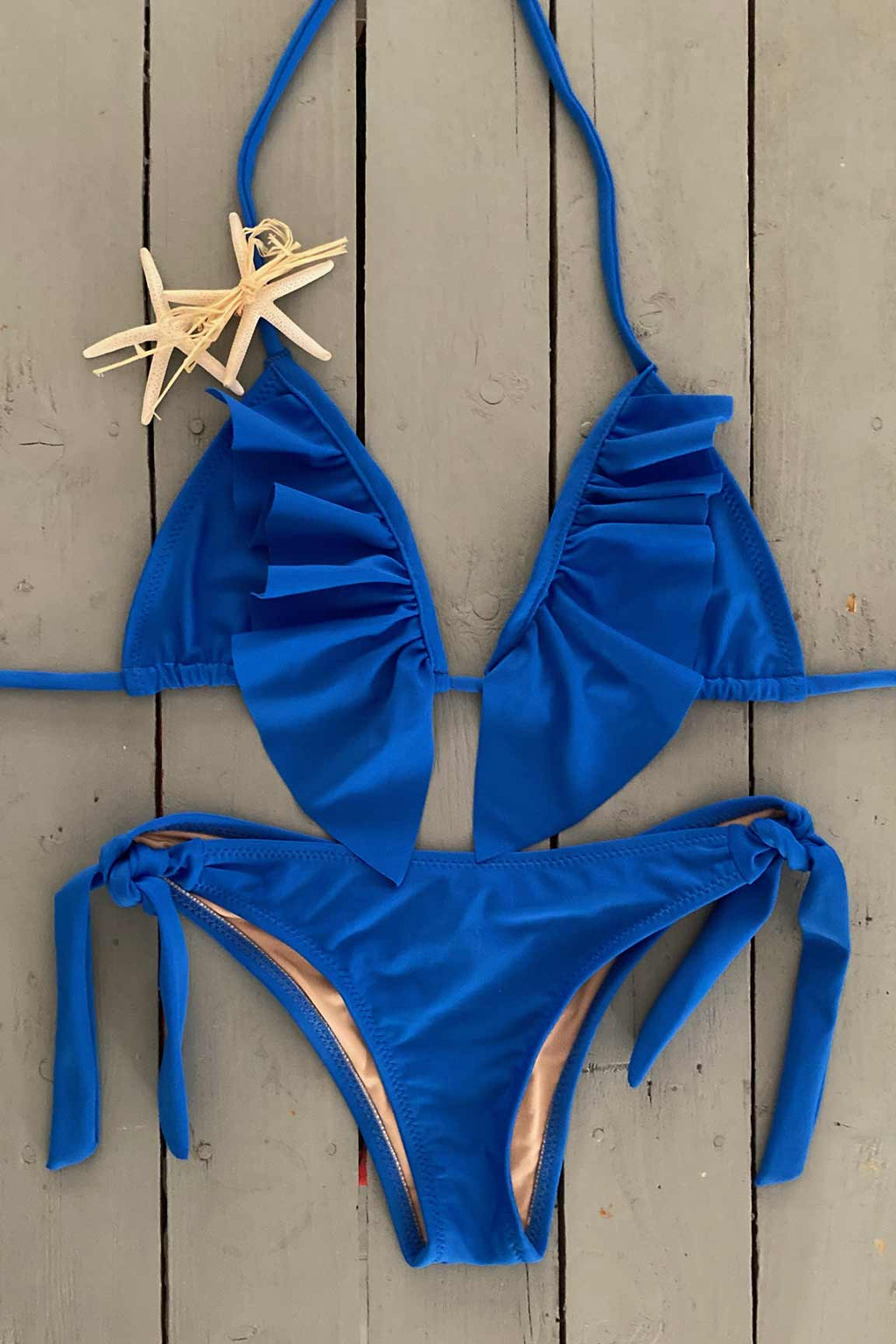 Royal Blue Banana Ties Bikini Bottom with Scrunch