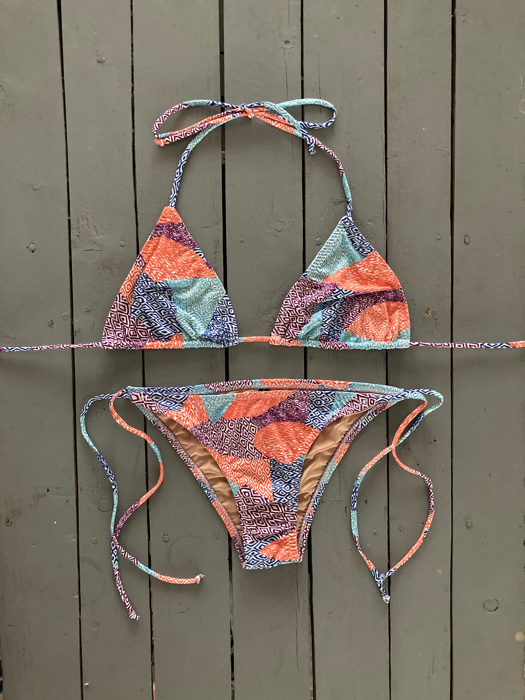 Red Floral Print Multi String Triangle Top and Multi String Spaghetti Bottom